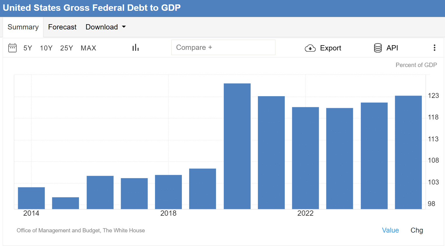 At first glance, the numbers justify the alarm. US debt-to-GDP has risen from around 100% before COVID to approximately 123% by the end of 2025.